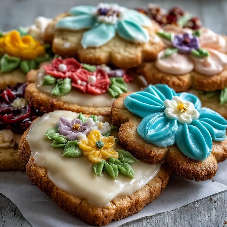 Save My sister called me three weeks before her baby shower in a panic—she wanted cookies that looked like they belonged in a magazine spread, but nothing too complicated. I found myself standing in her kitchen on a quiet Tuesday morning, piping delicate royal icing flowers onto butter cookies while sunlight streamed through the windows, and something clicked. These weren't just cookies; they became tiny edible works of art that made her guests gasp. Now whenever spring arrives, I bake a batch simply because the pastels feel like the season itself.