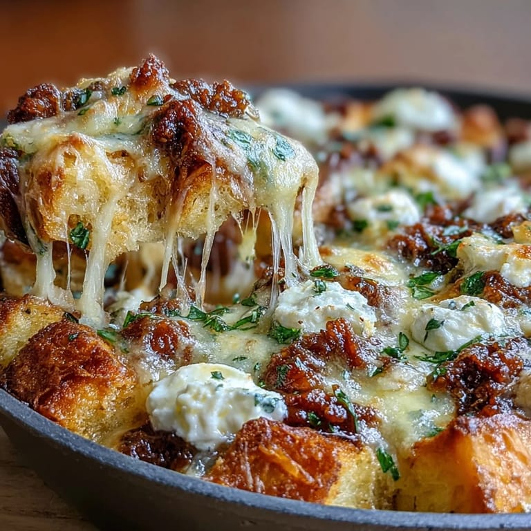 Save My sister called me in a panic one Sunday afternoon—she had twelve people coming for dinner and nothing thawed. I remembered watching my nonna layer lasagna, but that takes forever, so I grabbed a cast-iron skillet and started playing. Buttery garlic bread cubes seemed wild, but I wanted something that felt fancy without the fuss. Two hours later, that skillet came out of the oven bubbling and golden, and nobody missed the traditional pasta at all.