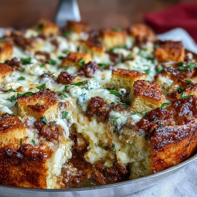 Save My cast-iron skillet sat on the stovetop one Tuesday evening, and I was stuck between two cravings: the gooey, comforting layers of lasagna and the crispy, buttery allure of garlic bread. Instead of choosing, I decided to marry them together, and what emerged from the oven was pure magic—a bubbling, golden masterpiece that somehow felt both indulgent and entirely unexpected. The kitchen smelled like every Italian dinner I'd ever wanted to cook, and by the time my family gathered around, I knew this skillet was going to become a regular visitor to our table.