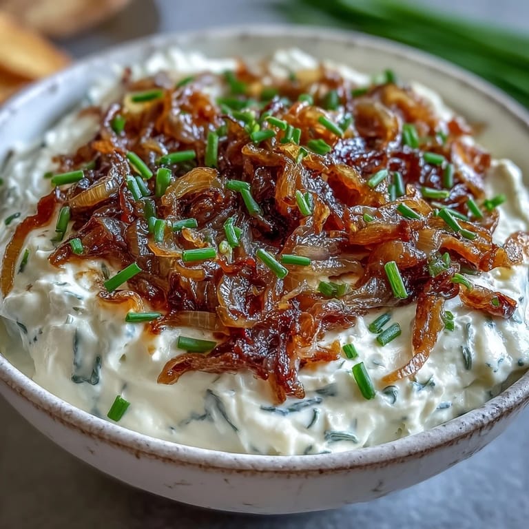 Save There's something about the smell of onions slowly turning golden that makes a kitchen feel like home. My neighbor brought a bowl of this dip to a potluck last spring, and I watched people keep coming back to it, scraping the bottom with crackers and sneaking spoonfuls when they thought no one was looking. The tanginess of Greek yogurt against those sweet, jammy onions felt like a revelation, and I asked for the recipe right there on the porch. Now it's become my go-to when I need something that tastes fancy but doesn't require much fuss.