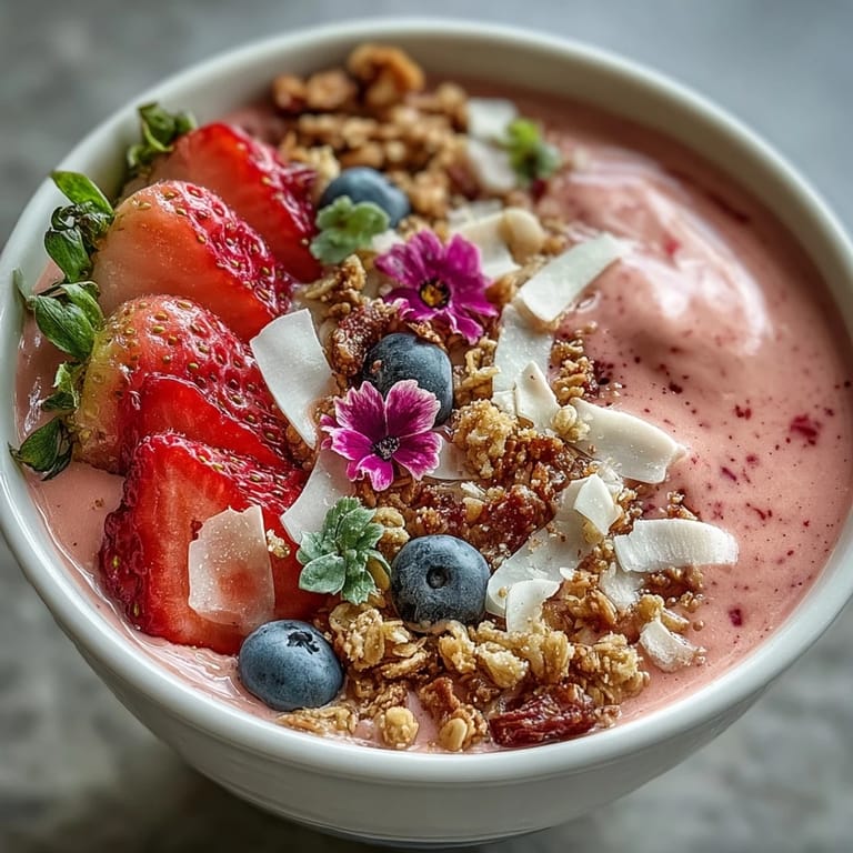 Save Celebrate friendship and flavor with this vibrant Galentine's Brunch Strawberry Smoothie Bowl. Designed to be as beautiful as it is delicious, this refreshing bowl is the perfect centerpiece for a festive morning gathering with your best friends. Its thick, creamy texture and bright pink hue capture the spirit of celebration in every spoonful.