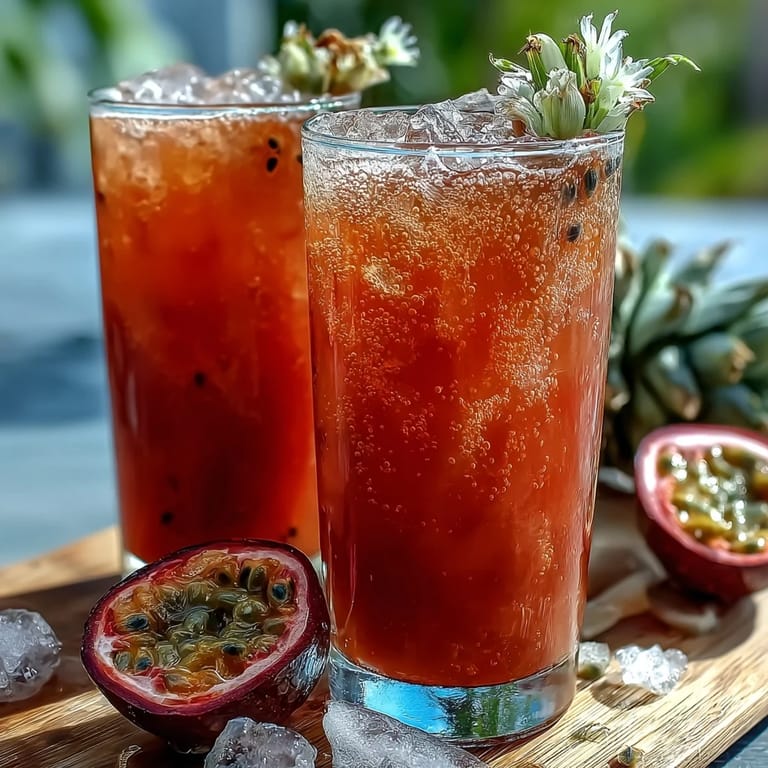 Save There's something about a perfectly balanced tropical drink that stops you mid-afternoon and makes you forget you're not sitting poolside somewhere warm. I discovered this guava-passionfruit combo while standing in line at a coffee shop, watching the barista layer those gorgeous jewel-toned juices with such care that I knew I had to recreate it at home. The first time I made it, I was surprised by how the homemade pineapple-ginger syrup transformed everything—it's not just sweetness, it's this bright, zingy backbone that makes the whole drink sing. Now whenever someone visits during summer, this is what ends up in their glass.
