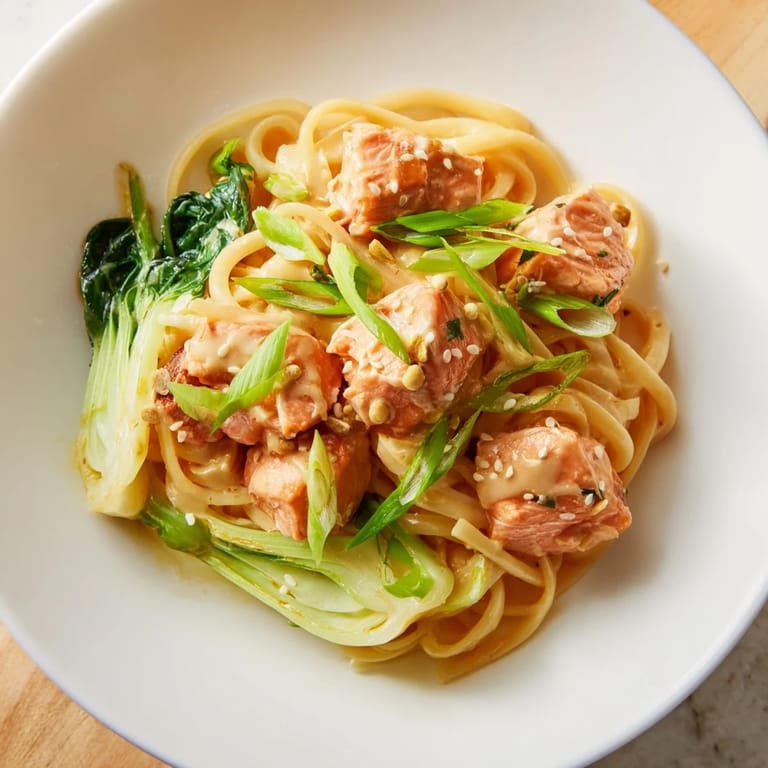The first time I served this to dinner guests, I was genuinely nervous about combining Japanese and Italian flavors so directly. But watching them twirl pasta, salmon, and bok choy onto their forks while making those satisfied sounds? That's when I knew this recipe had crossed from experiment to keeper.