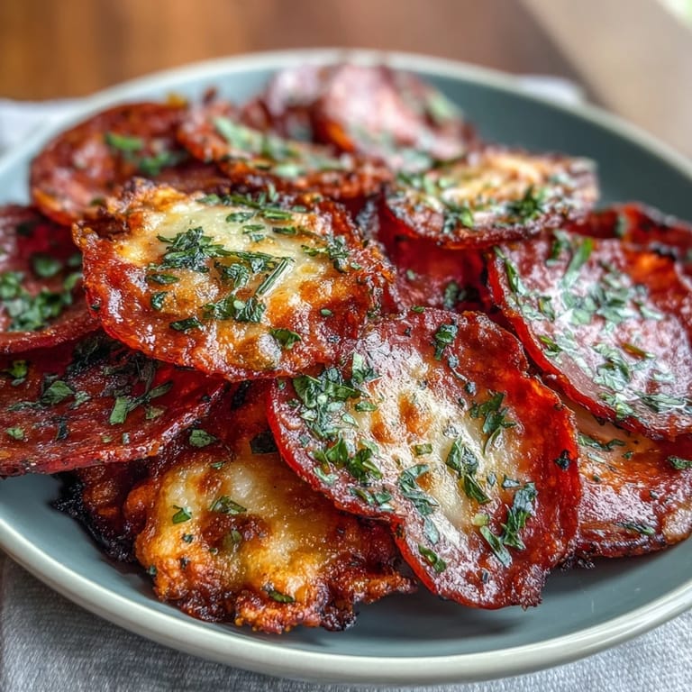Save My roommate burst through the kitchen door one afternoon, triumphantly holding up a bag of pepperoni and declaring she'd finally cracked the code on making crispy cheese crisps that didn't turn into greasy puddles. We spent the next hour experimenting, tweaking temperatures, and watching our oven like hawks. When that first batch emerged golden and crackling, we couldn't stop eating them straight off the rack, burning our mouths and laughing at how simple perfection turned out to be. These pepperoni cheese crisps became our go-to snack, our secret weapon at parties, and honestly, the reason we learned how to preheat an oven properly.