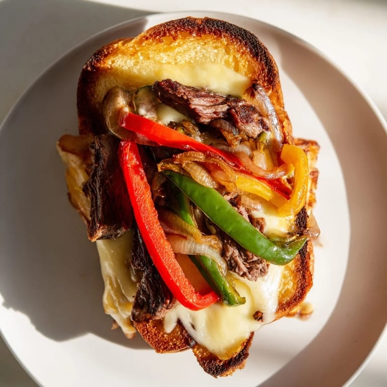 Save My neighbor Dave challenged me to make him the best sandwich I could think of, and I panicked for about ten seconds before realizing I could just smash two classics together. The Philly cheesesteak met the grilled cheese that afternoon, and honestly, the look on his face when he bit into it was worth every bit of butter I slathered on that bread. It's messy, it's indulgent, and it's exactly what you want when you're too hungry to care about being delicate. I've made it at least a dozen times since then, each one better than the last. This is comfort food with zero apology.