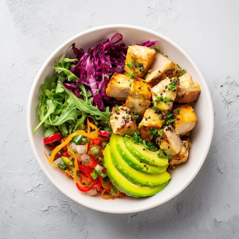 - Salad Base: 2 cups mixed baby greens (e.g., arugula, spinach, baby kale), 1 cup shredded purple cabbage, 1 medium carrot julienned, ½ red bell pepper thinly sliced, 2 green onions thinly sliced